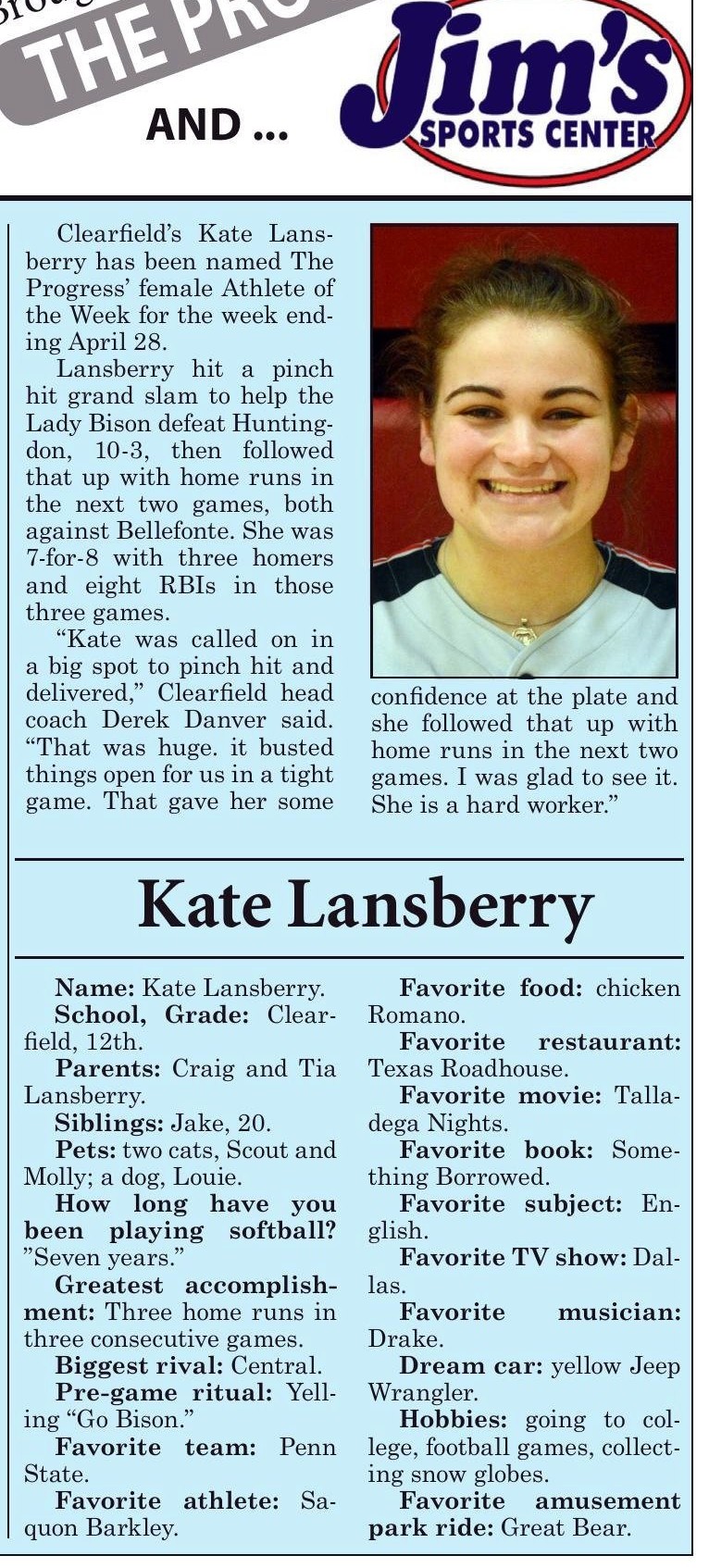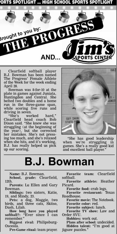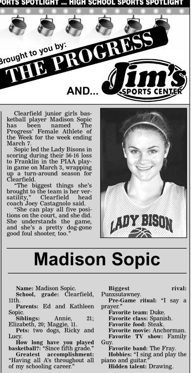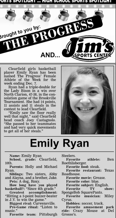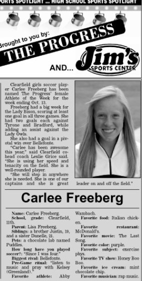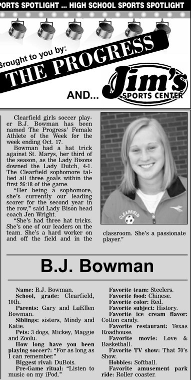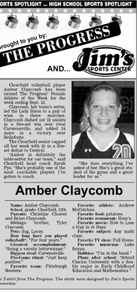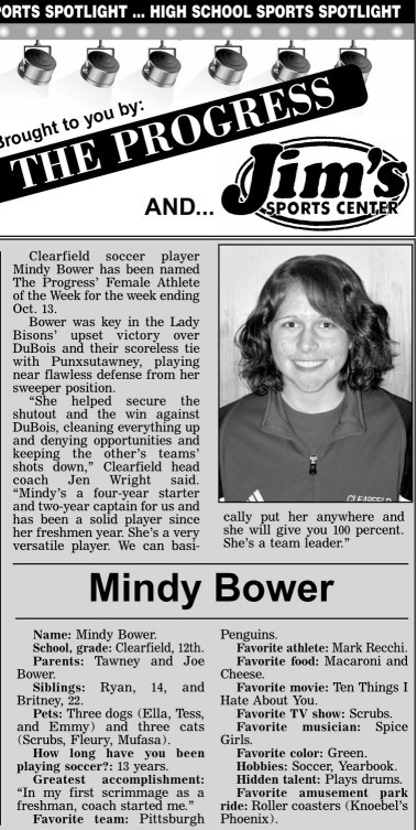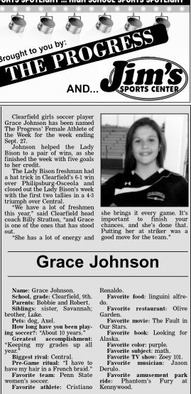 Each week, more or less, when schools are in session, The Progress daily newspaper & Jim's Sports Center