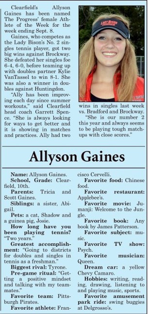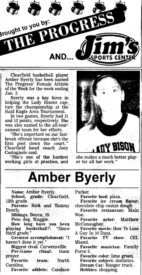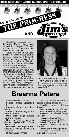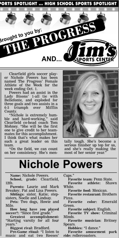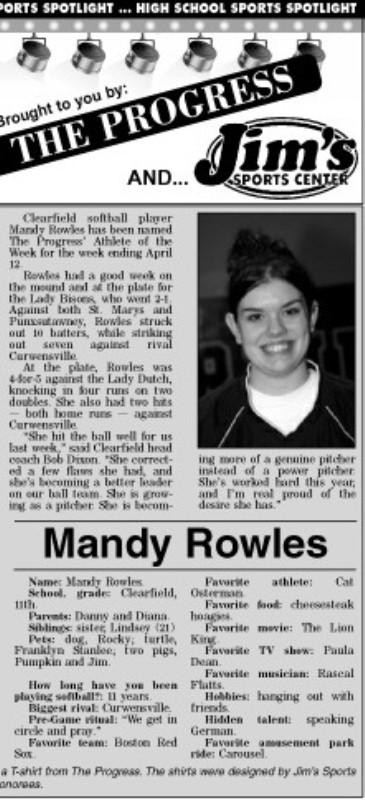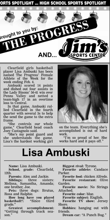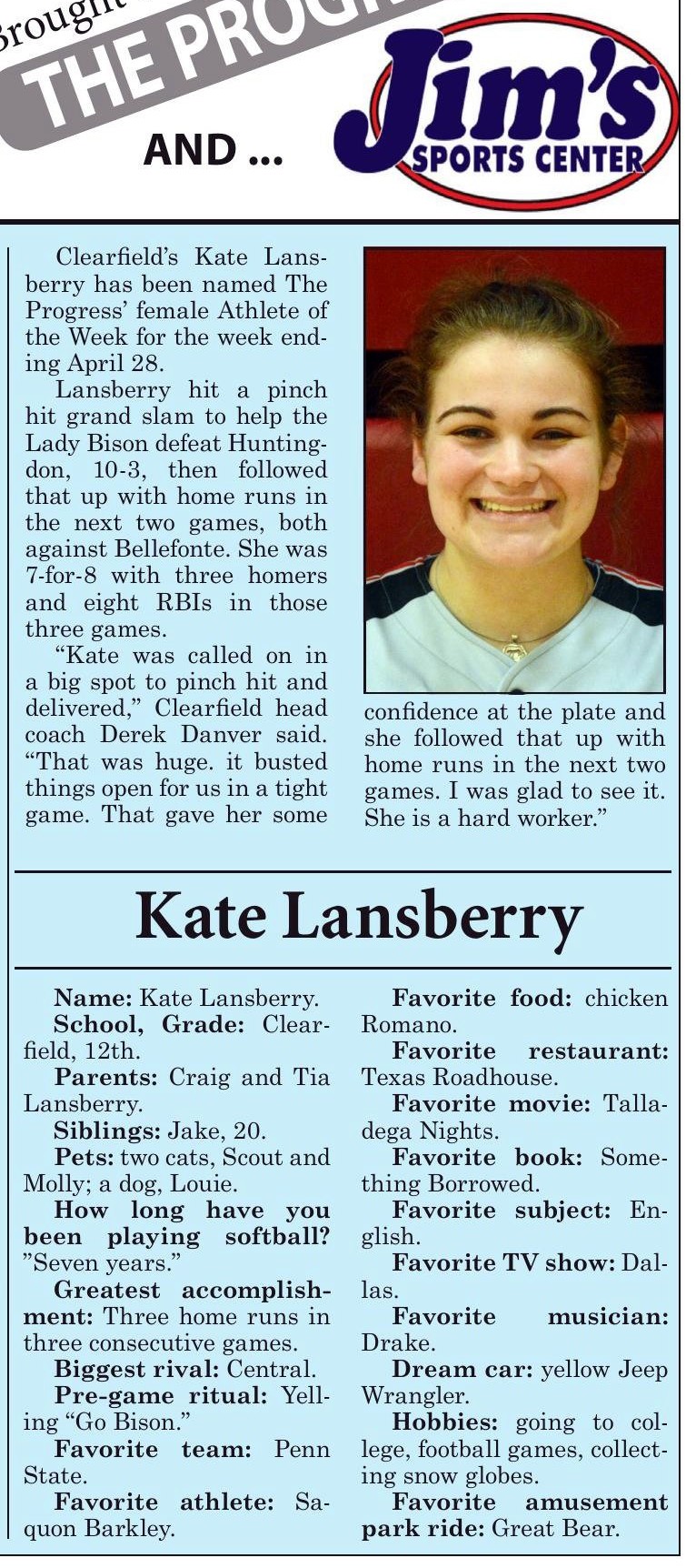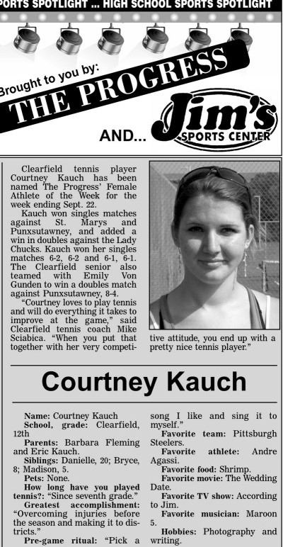 Each week, more or less, when schools are in session, The Progress daily newspaper & Jim's Sports Center