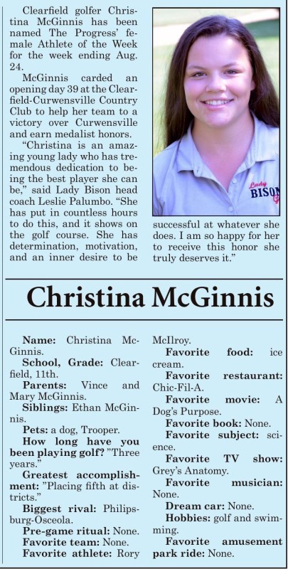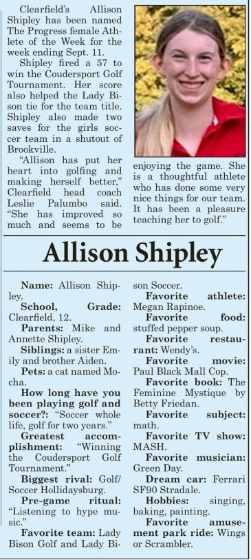 Allison Shipley (CHS '22) in '21 for Golf & Soccer, Elle Smith (CHS '23) for Soccer in '19 & '22 and Hailey Miles (CHS '26) for Golf in '24' & '25.