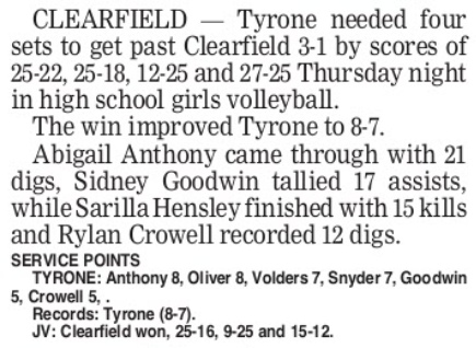 Interestingly, Clearfield outscored Tyrone 90-89 ~